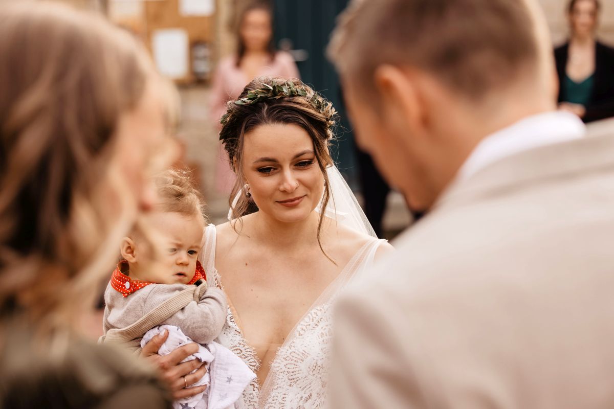 Viele Paare kommen zum Heiraten „nach Hause“. So auch diese beiden Lieben, die sich mit dem Schäferhof Langenstein einen absolut urigen Fleck dafür ausgeguckt hatten. Die unbändige Freude unserer schönen Braut über alles was geschah war umwerfend und es verwundert nicht, dass der schmucke Bräutigam seine Liebste immerzu anhimmeln musste. Ach, es hat einfach alles gestimmt, war dabei vollkommen ungestelzt, locker und zum Wohlfühlen. Auch was das Thema „Hochzeit feiern mit Kind“ betrifft, haben die Drei das wunderbar gerockt, war der kleine Mann mittendrin statt nur dabei und hatte seine Lieblings-Buddies an der Seite. Soo süß <3 die kleine Familie.